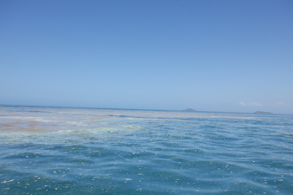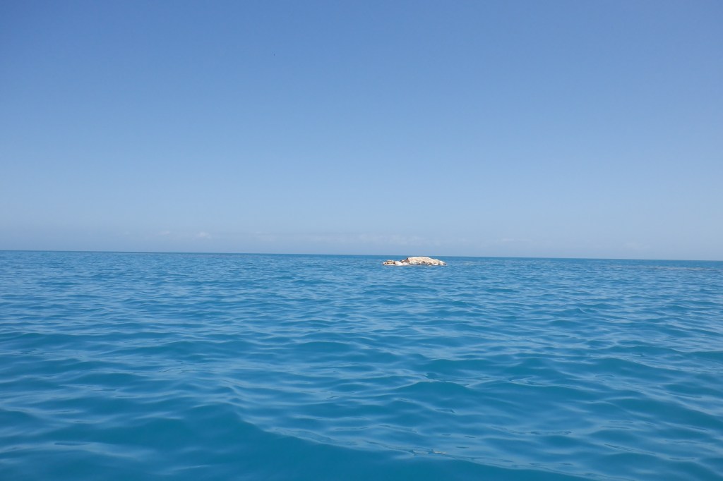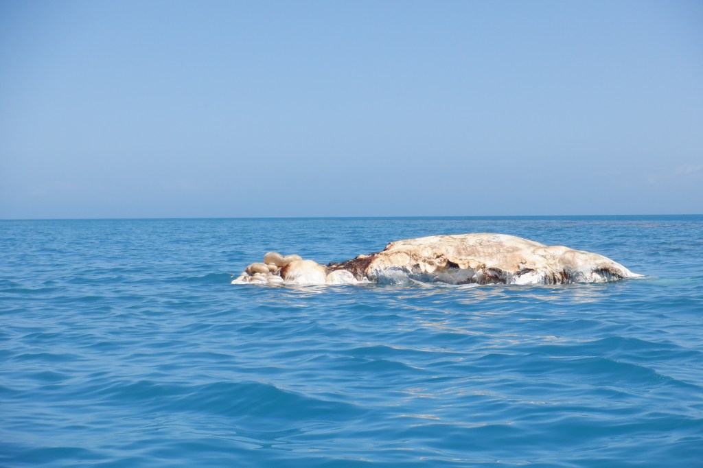 You cant see the mainland in the background due to the haze. Center front of the carcass you can just spot the sharks tail.