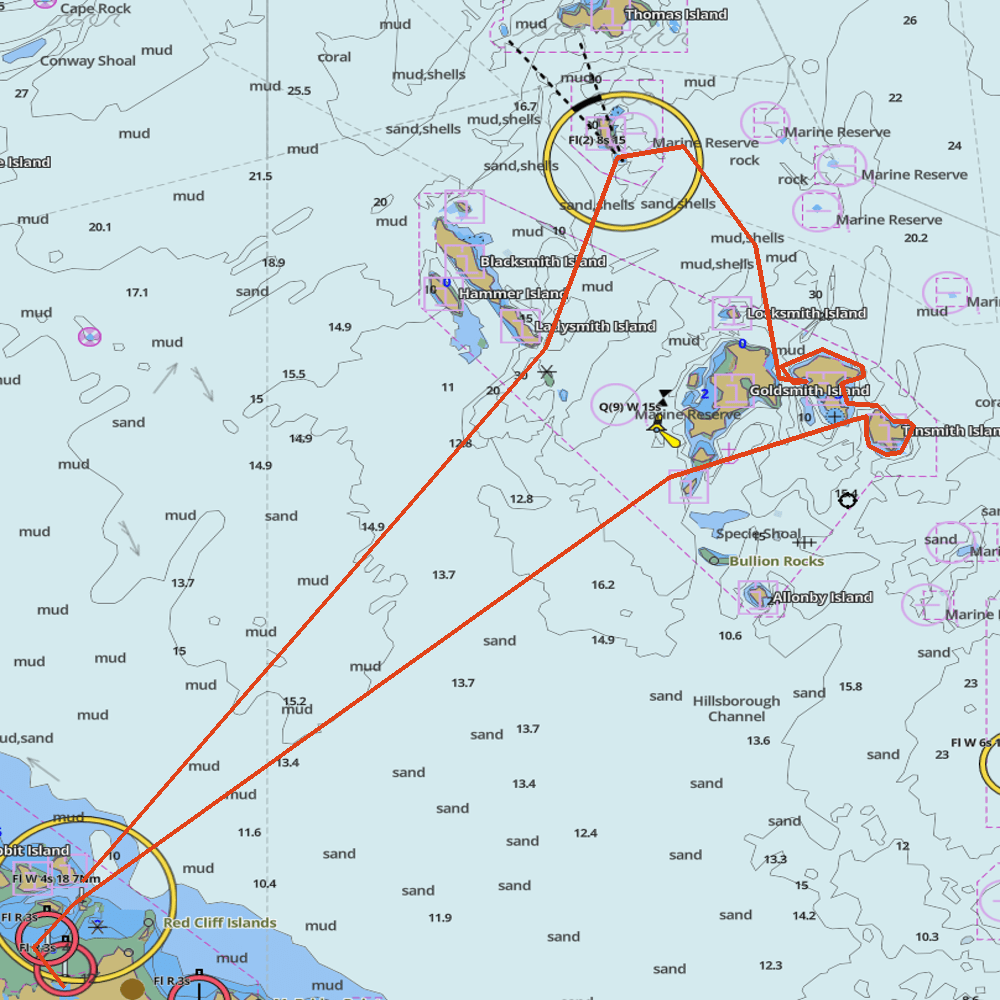 Reaching Goldsmith we headed across to southern end of Linne Island. Then across too the western side of Solder Island around the bottom and up the eastern side.