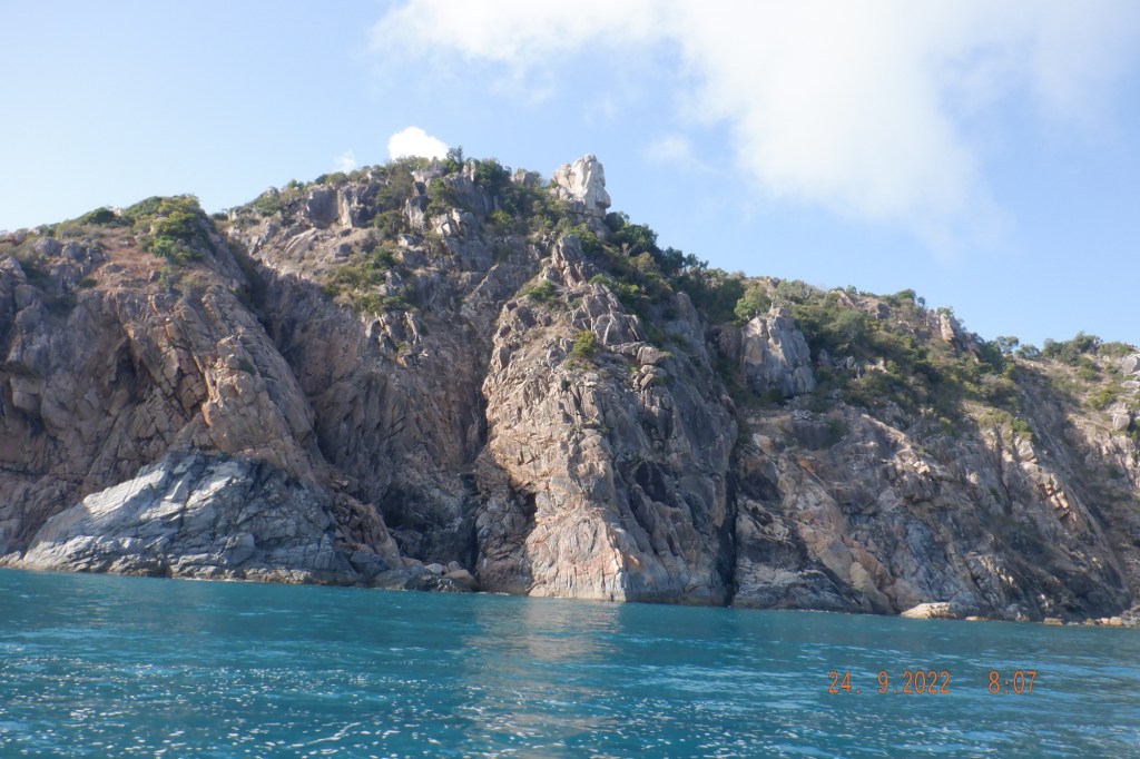 Rounding Saddleback Island confronted with unusual rock formations that is characteristic to all our islands.