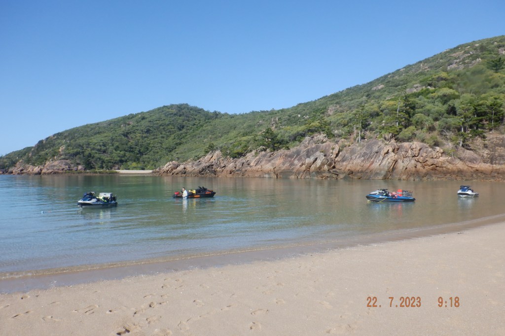 Going through the gap between Linne and Goldsmith Islands and around to Stingray Bay another gem. Had a bit of a fossick around picked up some rubbish and added to a overflowing chest. Be good to be able to have a islands clean up with a boat. I think Duane had that idea about a clean up.