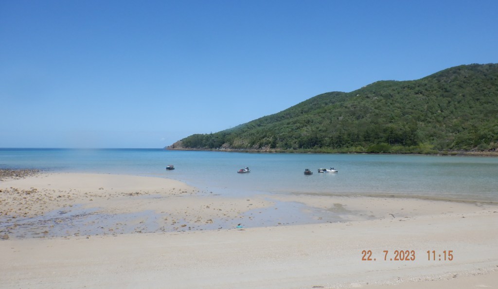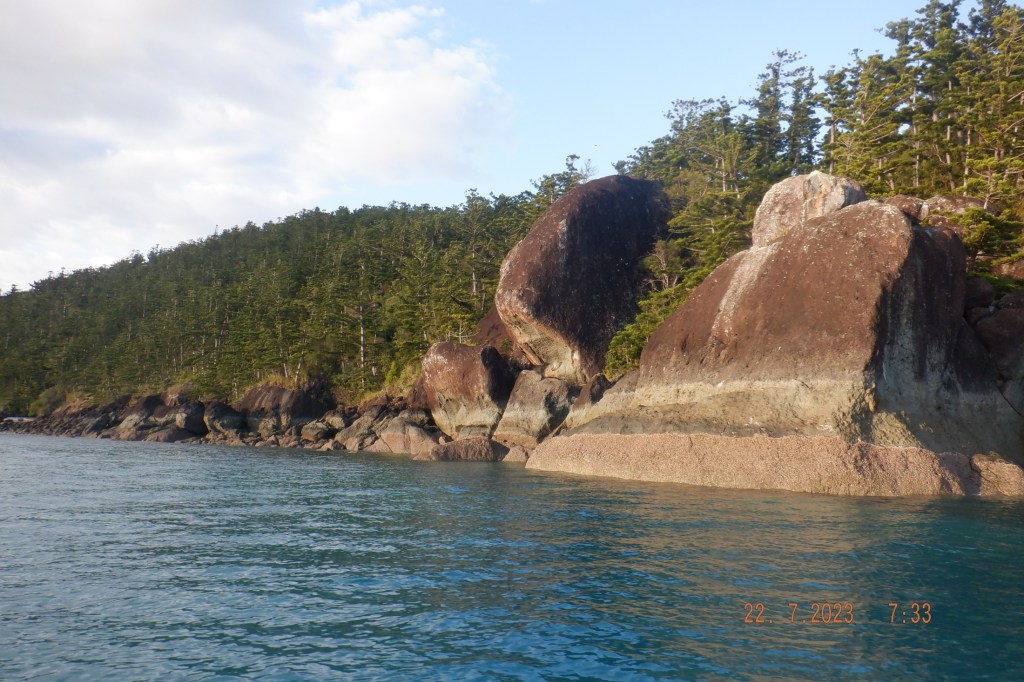 Leaving The Anchor Isles we head for Keyser Island of the Lindeman Group. Keyser Island at 800 and check out Megan Bay for access. We found some reef rock off the beach with still just under a meter under us and could of accessed beach.