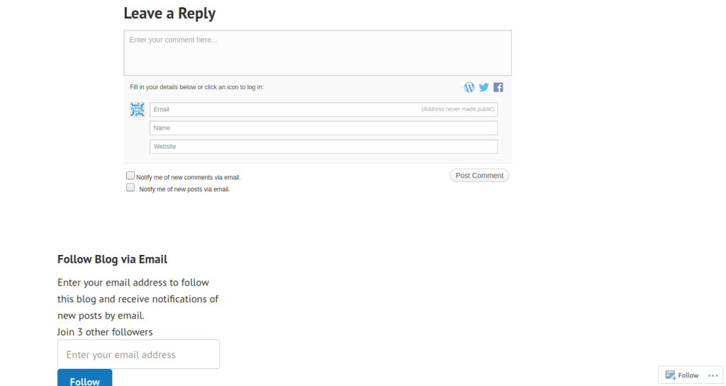 To Follow a email address is needed otherwise contact can’t be made to notify of a new Blog. The Follow Blog via Email