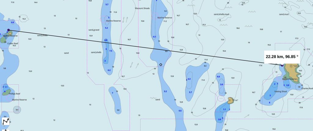 Cullen Islet 20klm 30 minutes at 40kph arrive 0730. The first 20km is barely over 10M in depth. Be interesting ? Possible landing beach south west corner ?